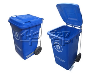 华都牌100L户外塑料垃圾桶,增加了脚踏自动翻盖功能,无需手动掀开垃圾桶盖,方便实用卫生。